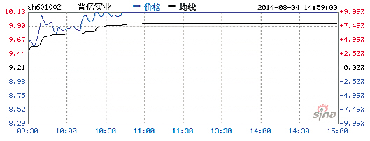 昨开:9.44元 最高:10.13元 涨跌:9.99%