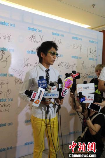 国内知名音乐组合羽泉今日在北京为自己投资的智能环保的独轮自平衡车站台,并亲身示范,倡导绿色出行。