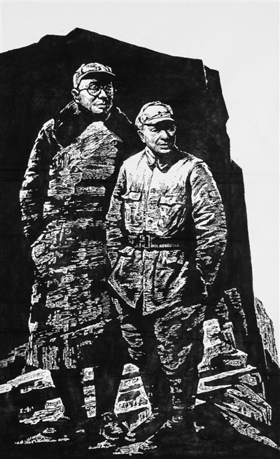 95年前的华蓥山下,渠江岸边,东门码头,十几岁的邓小平告别故乡时,精神的力量与正义的信仰便如行装一般与他随行。之后,无论是在法国里昂的工厂,还是在红军长征的队列;无论是在抗日烽火的战场,还是在大别山的山径,甚至在江西南昌的小院里,他都不曾懈怠和放弃。坦诚地说,他的这种品质于绘画艺术而言是可以再现却很难表现的。再现他在不同历史时期可视的形象,也并不是这个展览的目的。展览努力要做的是在可视的形象中提炼出带有品质色彩的人物个性,并用版画这一绘画手段表现出他那不凡的品质。行行复行行。当历史于他有了一线希望时,他对责任的理解,他对担当的勇气,都成为画家们丰富想象的源泉。没有对国家、对民族真诚深挚的热爱,没有对党、对人民无比的忠诚,便无法深刻理解这一光辉形象的光辉、这一伟大人物的伟大。美术创作还要从光辉与伟大中去发掘人性的所在,从邓小平常常说“我是中国人民的儿子”这一根本立场去发现伟人的品质,才可能通过情感与理智的交织描绘出人性之美,以让无数中国人不但通过形象、更通过人性,去审视理解一代伟人的不凡,达到审美的目的。
