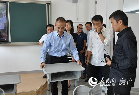8月27日,王石踏访北京四中房山校区。王石强调,在校园设计建造中,要真正将“绿色”意识、“绿色”理念植入校园。(人民网记者孙红丽摄)