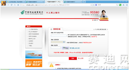使用谷歌chrome35浏览器:登陆邮政银行网页