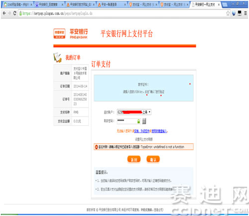 同样使用谷歌chrome35浏览器支付宝付款,登陆平安网上支付平台: