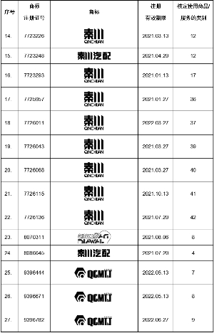 注:1、上表中序号为31、32、38的的注册商标系在本次重大资产重组上报中国证监会审核前申请,在中国证监会审核期间/审核通过后取得注册商标证;