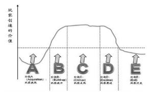 A阶段属于玩家进入阶段,此阶段玩家并不创造游戏价值,但是用户群的形成会在日后为价值的增长做好基础。在这一阶段,玩家进入新游戏,如果短时间内不能了解和熟悉基本的操作和玩法,那么流失的风险将会提高很多。