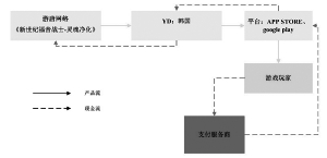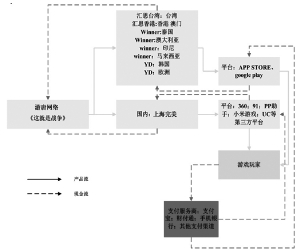 《美姬爱作战》国内由上海完美代理,上海完美在360手机助手、91助手、PP助手等平台上推广和运营,境外地区由其他海外运营商分别代理,主要通过Google Play和App Store平台在当地运营和推广。具体的流程图如下: