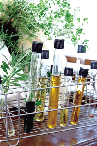 在市场上,即便是标榜自己无添加的护肤品牌,只要你有心去读一读成分表,各种酸类、醇类、烯类的拗口字眼在眼前跳跃,将近40种成分。在普罗旺斯,你可以在芳疗工作室学习制作自己的面霜。仿佛置身化学实验室,宽大的不锈钢工作台上,烧杯、玻璃碗、电子搅棒、电子称、电子温度计一应俱全,统统用酒精消过毒。穿起白围裙,戴上护目镜,把手洗得干干净净,套上橡胶手套,专业范儿必须做足。