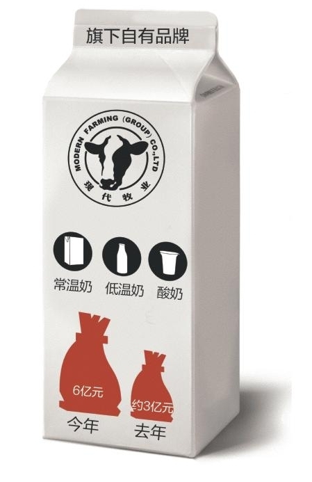 在下游方面,现代牧业也开始逐步在发力,2012年现代牧业的自有品牌液态奶正式上市,2013年的销售额达到3.2亿元,高丽娜此前曾公开表示,该公司液态奶2014年的销售目标是6亿元,值得注意的是,高丽娜还明确表示,“终端市场销售的现代牧业品牌牛奶,不及总产奶量的6%。不过,现在我们在所有的牧场里都有预留,随着市场需求增加,可以及时扩充生产。”![]()