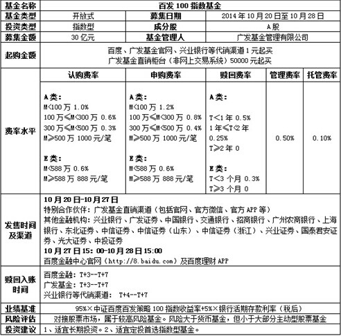10月23日,百度金融平台新上线一款基金产品,叫做百发100指数。该基金产品将于27日下午3点在百度金融平台正式销售,销售总金额只有12个亿。这已经是百发100指数基金的第二批次销售,10月20日广发基金、兴业银行、招商银行等直销和代销渠道已率先开卖,并创下26小时售罄18亿的销售记录。