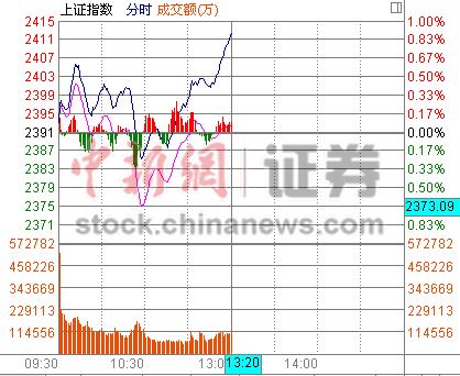 截至午间收盘,沪指报2412.55点,涨21.47点,涨幅为0.9%,成交1395亿元;深成指开盘报8162.54点,涨71.99点,涨幅为0.89%,成交1163亿元。