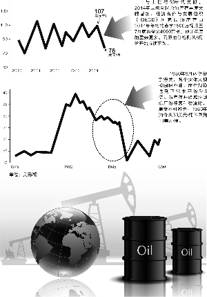 回顾2014年此波油价下跌和供需面的变化。2014年7月伊拉克暴乱稍有平息后,全球最大的基准原油Brent价格便开始下跌。2014年1~7月经济合作与发展组织(OECD)国家原油库存增加了5900万桶,去年同期仅增加400万桶。原油库存由2014年年初的赤字1500万桶升至7月底的盈余4000万桶,预计年底的盈余更多;12月日、欧、美的库存可能同比增5800万桶,这将是20年的高点。与此同时,三大OECD国家7月底的成品油库存是20年中的第二低点,三季度末成品油库存可能与去年同期持平,四季度可能下滑2800万桶。