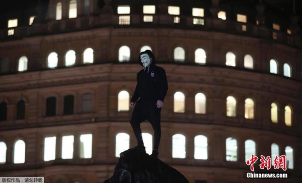 伦敦爆发骚乱 数千名“面具男”举行抗议活动