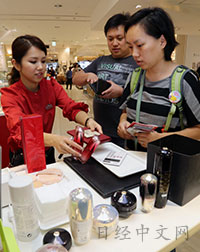 对于将从日元贬值中获益的外国游客来说,其购买对象的也并不仅限于高额商品。以面向外国人的销售额比例高达10%的东京银座的百货店——三越银座店为例,位于地下1层的化妆品销售柜台10月销售额与上年同月相比增加了40%。自10月起,只要超过5千日元而低于50万日元,购买化妆品就能享受消费税免税政策,因此“外国旅游者的集中购买出现了增加”(该店)。