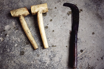与其说树皮是被剥开的,不如说是被一边敲打一边脱下来的。耐心、用力均匀是当中最重要的。一块不足一米长的木头,要把树皮全都敲脱,至少要整整一个下午。“你要是着急了,那个皮就坏了。”