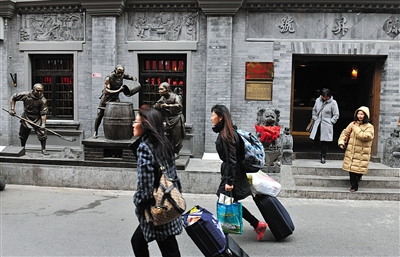 12月3日,北京著名旅游景点前门大街上,游人往来不绝。位于前门大街西侧的“红星二锅头展览馆”吸引了不少游客登门参观。
