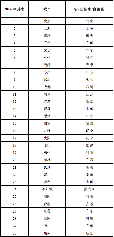 据福布斯中文网报道,2014年12月15日,上海——福布斯中文版第三次发布2014年中国大陆旅游业最发达城市榜单。北京、上海、重应名列前三。