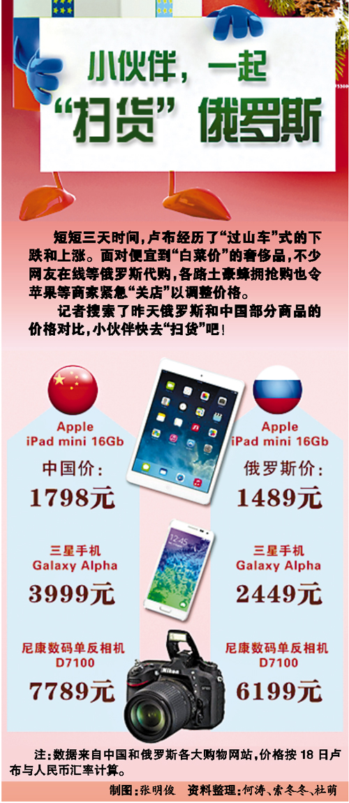 卢布狂跌 俄罗斯和中国部分商品价格对比(图)