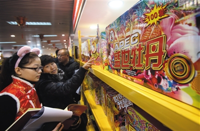 新京报讯 (记者郭超)记者昨日从北京最大的烟花供货商熊猫烟花了解到,今年北京市的烟花销售量预计比去年削减30%,APEC环保烟花将进入寻常百姓家。