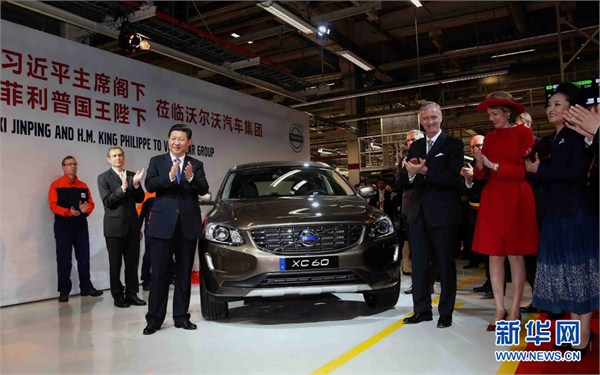 4月1日,国家主席习近平在比利时国王菲利普陪同下参观了沃尔沃汽车公司根特工厂。沃尔沃公关经理马克德梅说:“沃尔沃是中国工厂,欢迎习主席回家!”