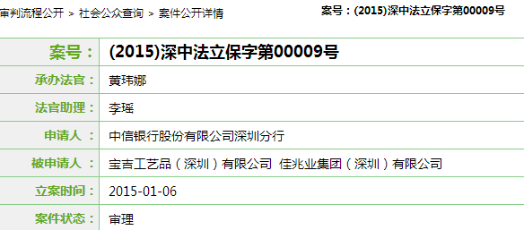 公示显示的被申请人有佳兆业集团(深圳)有限公司、宝吉工艺品(深圳)有限公司以及深圳市悦峰投资有限公司。