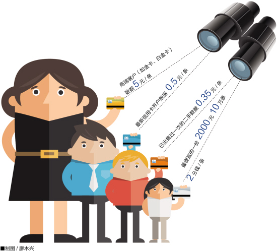 例如,最新信用卡开户数据按照0.5元一条出售;已经出售过一次的二手数据,可以便宜到0.35元每条;部分高端客户如金卡、白金卡持卡人信息每条售价则高达5元。借助网络聊天、支付工具,买家从下单到得到这些信息,交易全程仅需数分钟。