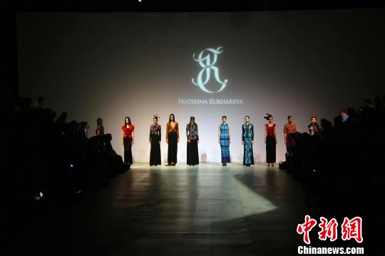 14日晚,2015“哈尔滨时装周”在哈尔滨市红博西城红场美术馆开幕,来自10个国家和地区的40多位中外服装设计师以及百余位中外超模将在为期五天的发布会里分别亮相。图为首场发布会走秀现场。 王栋梁 摄