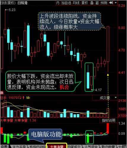 后市研判:在热点散漫,权重上行乏力的弱势局面下,港口航运的强劲反弹表明,近期该板块或呈资金避风港,若资金能持续流入,后市依旧看涨,期间可采用委买队列把握分时资金动态,采用大单净量功能跟踪资金轨迹。