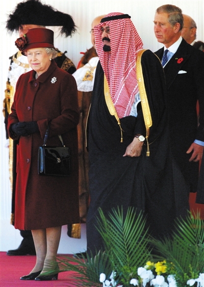 2007年,英国女王、查尔斯王子与来访的阿卜杜拉在欢迎仪式上。