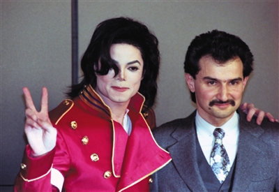 1996年,迈克尔·杰克逊与阿尔瓦利德合照。