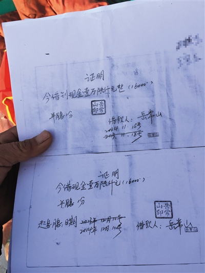 人越聚越多时,闫龙发现,邻村东芦王庄也有不少村民拿着手写白条,上面有岳常山作为借款人的签名,“借钱数额少则几千,多的几十万。”
