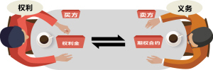 期权是交易双方关于远期买卖权利达成的合约,投资者支付一定的费用(期权费或权利金)买做空或做多的权利。权利买方可以约定的时间、约定的价格以及约定的股票(或基金)数量与权利卖方发生交易。买方可以弃权,卖方是义务方,要缴纳保证金。