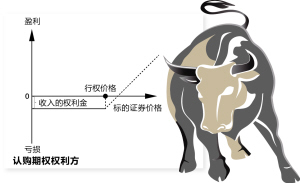 注:当投资者手上没有股票,对市场走势不确定时,可选择买入认购期权,市场上涨时行权,免除踏空风险,市场下跌时,放弃行权,损失权利金。另外,当非常看好某一股票,但手中资金有限的时候,也可以通过买入认购期权来分享股票上涨收益。