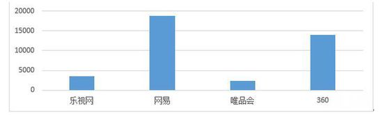 从净利润基数来看,乐视网2014年Q3的净利润仅仅超过了唯品会,离网易和360都相差甚远。360的季度利润约为乐视网的4倍左右: