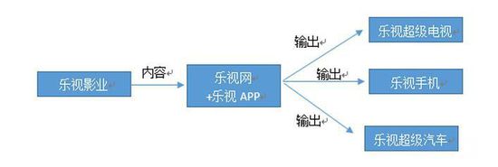 众所周知,乐视网被外界一直津津乐道的是其“平台+终端+内容+应用”的全产业链模式。可以概括成如下图所示: