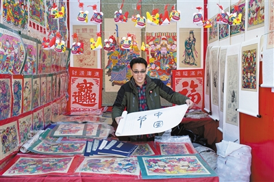 张运祥说,他来地坛庙会快7年了,不只是为了赚钱,也是觉得北京会聚集全国各地的人,希望在这里对木版年画进行推广。
