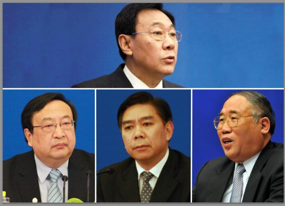 张勇(上)、朱之鑫(下左)、徐宪平(下中)、解振华(下右)