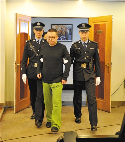 昨日该案在朝阳法院开庭审理。北京从清晨便开始降雪,为保证开庭时间,8时许尹相杰便身着绿色军大衣被提押至法院。