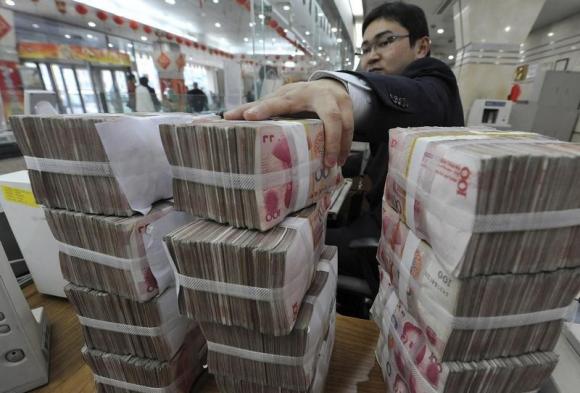 图为安徽合肥一家银行的职员在清点人民币。 摄影记者: Reuters/Stringer