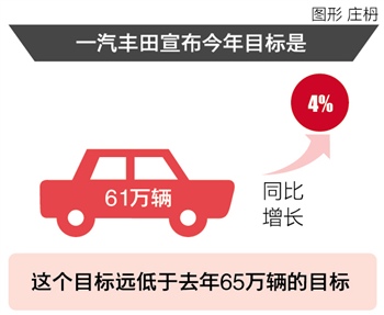 在这一背景下,一汽丰田今年的销售任务特别引人关注。3月13日,一汽丰田宣布今年目标是61万辆,同比增长4%。这个目标远低于去年65万辆的目标,姜军对21世纪经济报道记者说:“今年制定的目标是踏踏实实的,不想给经销商过多的压力。”