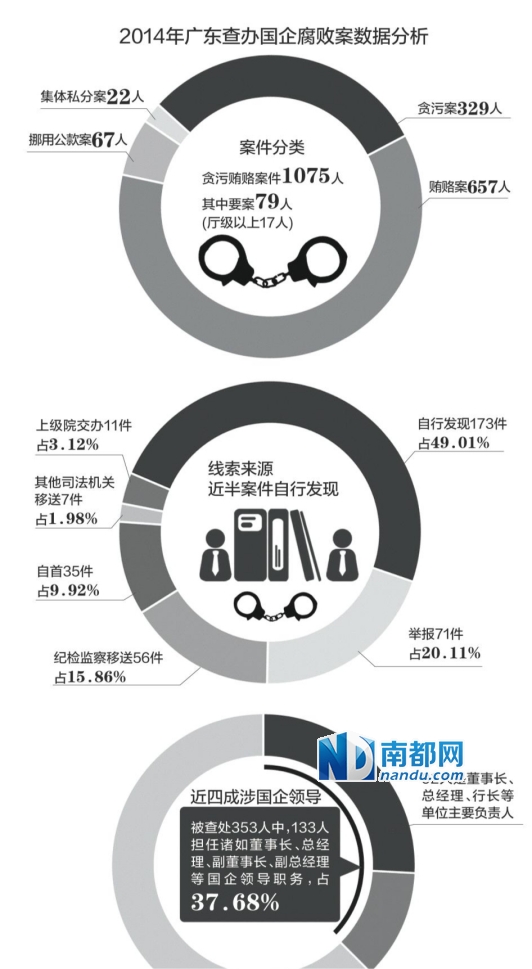 广东去年查办国企贪腐案353人 窝案串案特征明显