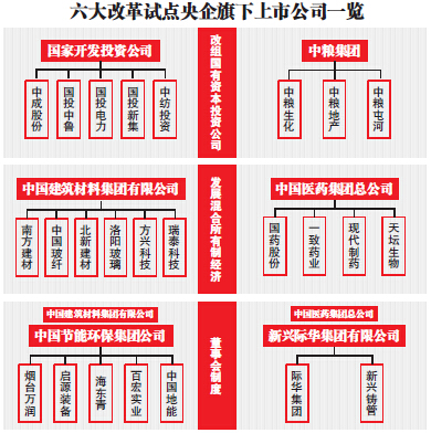 2014年7月份,国资委在中央企业开展“四项改革”试点工作。有分析指出,2015年国企改革将进入实施年,央企多项专项改革将有比较大的突破,国企改革的第一批试点将取得重大进展,随着后续改革方案步入实施,六大集团下属的上市公司有望再次得到市场追捧。