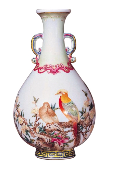 2亿港元 清乾隆御制珐琅彩“古月轩”题诗“锦鸡花石”图胆瓶(拍卖后以私人洽购形式售出) 2011年4月