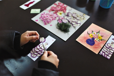 但经过去年暑假17天的压花培训,她在师傅手把手的教导中,一步步从采摘、风干,再到压制乃至创意,不仅学会了摆弄小花叶子和书签贺卡,还能自行发挥想象创作压花作品。