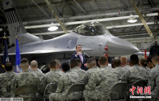 当地时间2015年4月9日,韩国平泽市,美国国防部长卡特访问乌山美军空军基地。