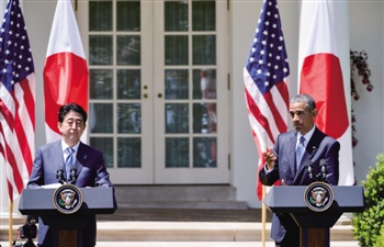 美国总统奥巴马(Barack Obama)在当天和日本首相安倍晋三(Shinzo Abe)一起出席的白宫记者会上说,近20年来首次更新的双边安全防卫联盟,将使两国的军事力量更加灵活的应对从海事安全到灾害响应等“一系列挑战”。