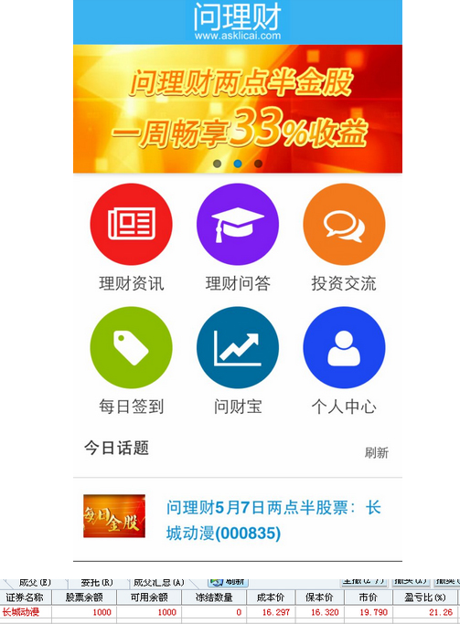 问理财5月11日讯 5月11日长城动漫(000835)早盘9:38封死涨停,股价报1979元,涨幅达10.01%。该股为5月7日问理财手机APP上的两点半金股,有问理财粉收益已经高达21%。