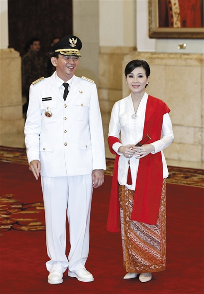 2014年11月19日,印尼雅加达,雅加达特区省长钟万学携妻子一起参加就职典礼。