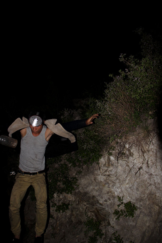 2015年05月12日,山西省运城市,在一个石头缝里捕完了蝎子,因为枣刺太多,小张懒得原路返回,就从两米多高的石头崖上蹦了下来。 张博文,山西运城盐湖区东郭镇磨河村人,中条山的九龙山就在他们村范围里。他说:“别小看这个季节性的生计,带来的收益一点也不小,一个夏天收入数万元。”