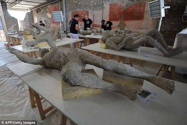 公元79年,意大利维苏威火山喷发,罗马庞贝古城被火山埋葬,迄今已经1900多年。近日,意大利修复工作人员利用石膏技术保留了86名遇难者被埋葬前一瞬间的遗体。