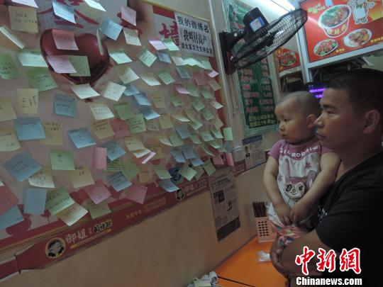 在付高产的酸辣粉小店里,爱心墙上贴满了食客们对文文的祝福。 韩章云 摄