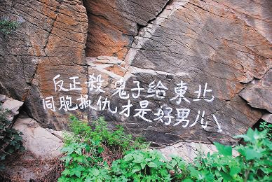密云西口外村的石崖上,至今保留着王波手书的抗日标语。